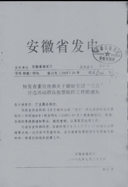 (1)以2009年7月20日《人民日报》等13家中央主要报纸和《安徽日报》提供的样票,以A4纸规格复印。