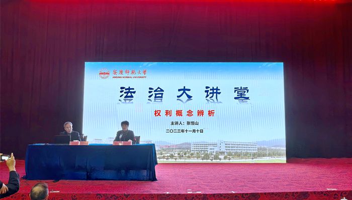 11月10日,中央党校政法教研部原主任、一级教授,天津大学卓越教授、博士生导师,国内著名法学家张恒山作客法治大讲堂,在图书馆东厅作“权利概念辨析”专题学术报告会。报告会由校长彭凤莲主持,校团委、法学院等部门负责人和500余名师生到场聆听。