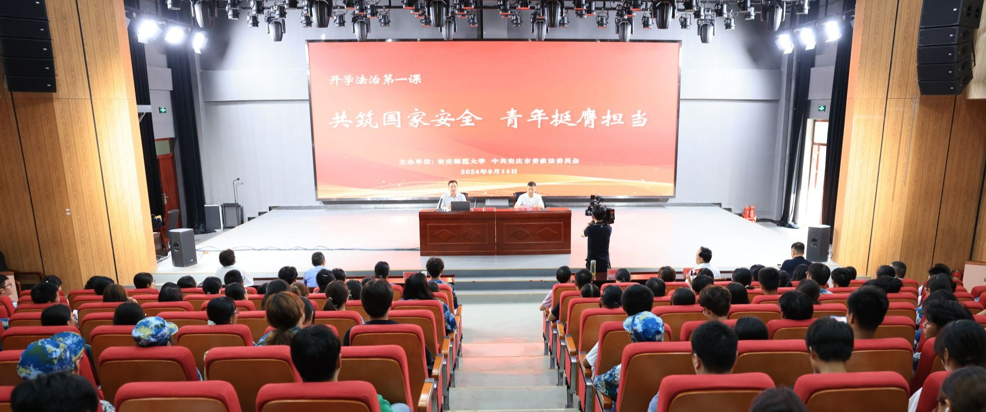 9月14日,安庆市委常委、政法委书记王赵春受邀来校为师生讲授“开学法治第一课”。校党委常委、副校长申传胜主持报告会。