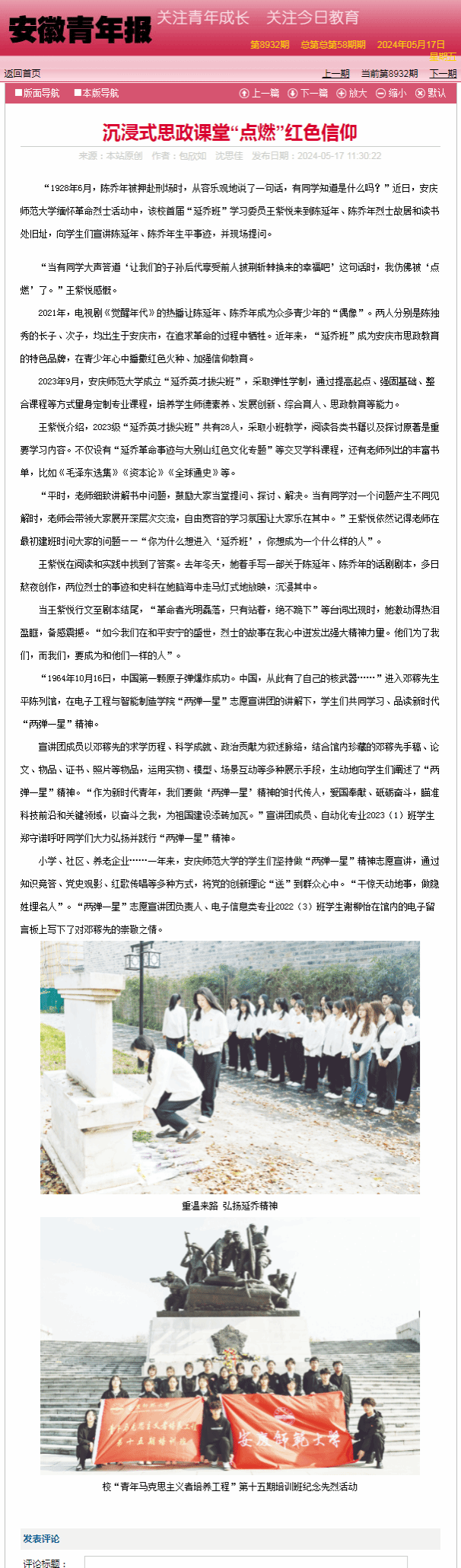 来源:【安徽青年报】http://epaper.ahyouth.com/paperdetails.php?CurrPeid=2350&CurrSid=22788&newsid=65368