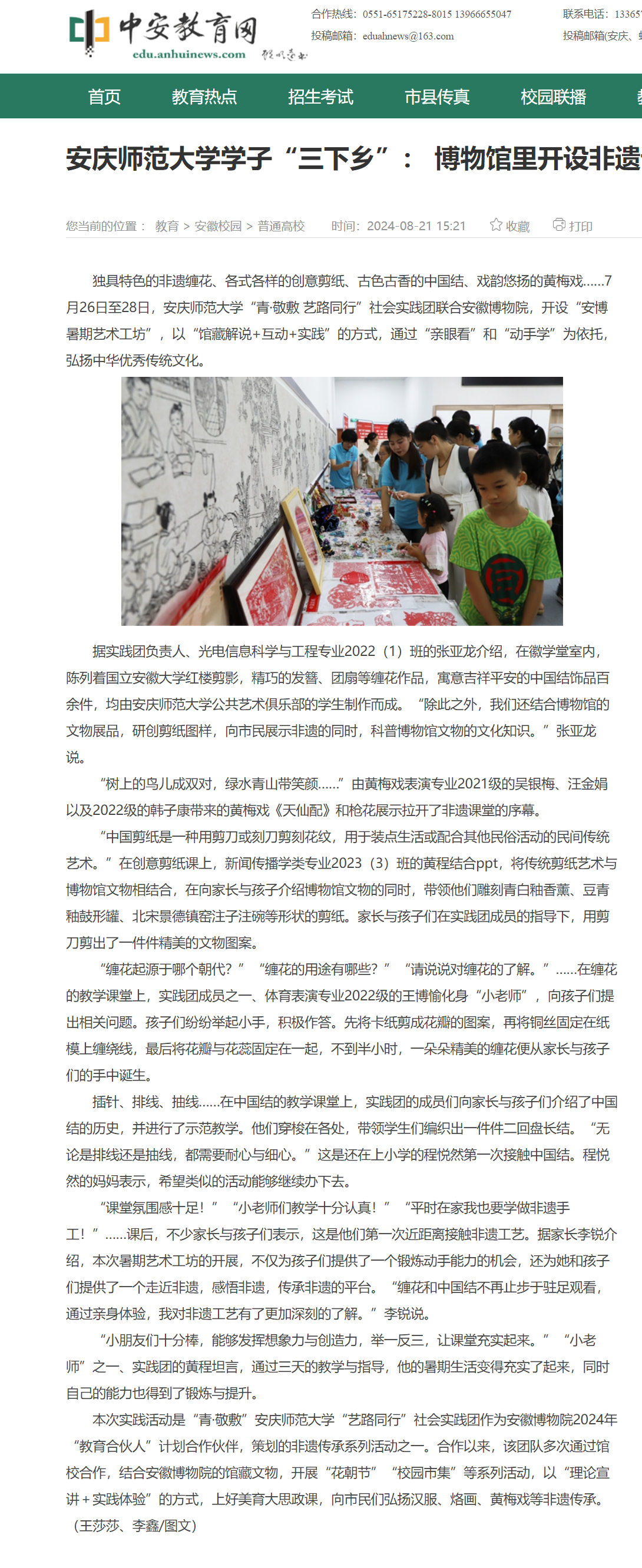 下一篇:安徽新闻网:安庆师大学子“三下乡”社会实践团安徽博物院里开设“非遗”课堂