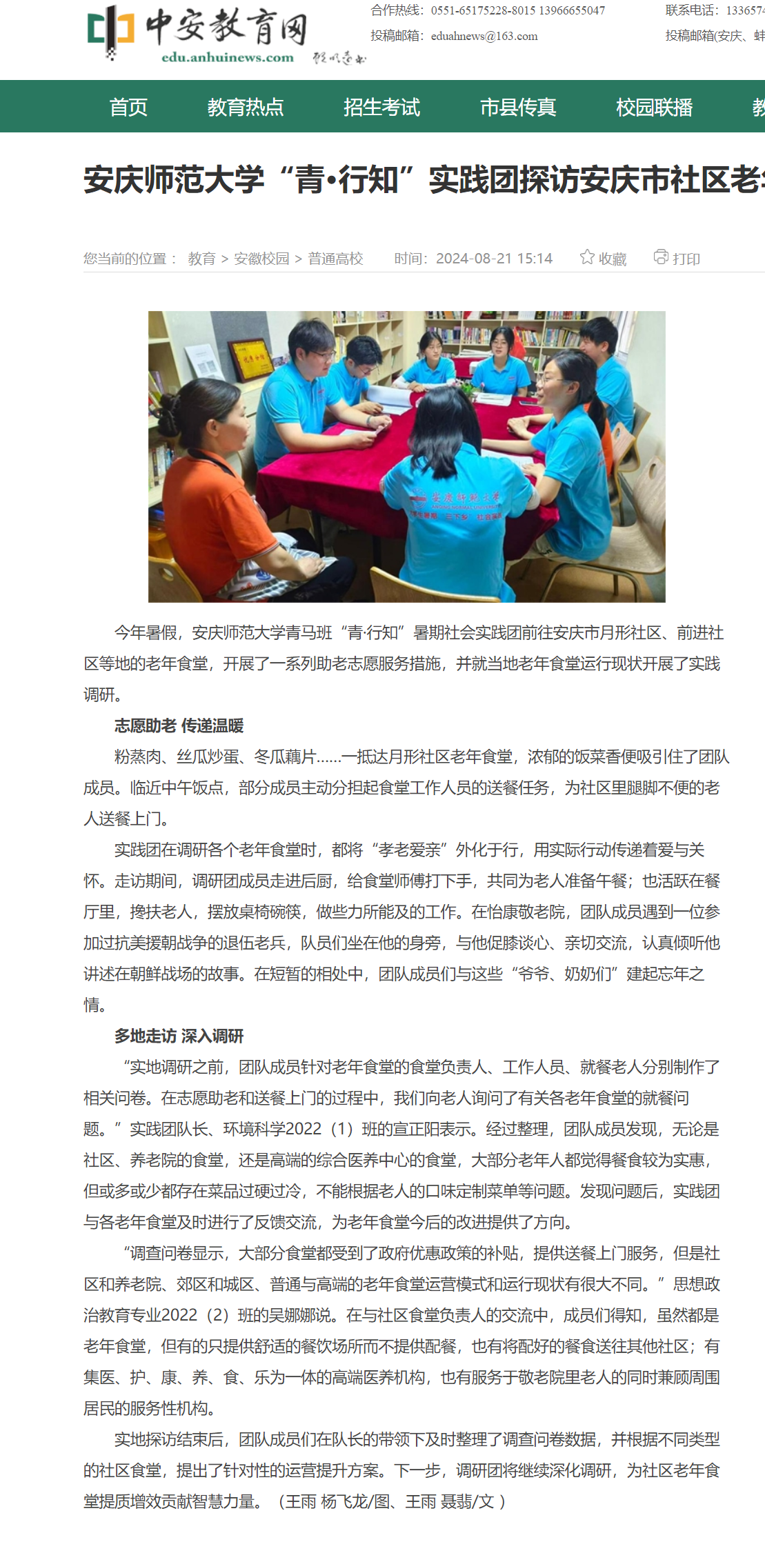 上一篇:安徽新闻网:安庆师大“青·行知” 实践团调研老年食堂