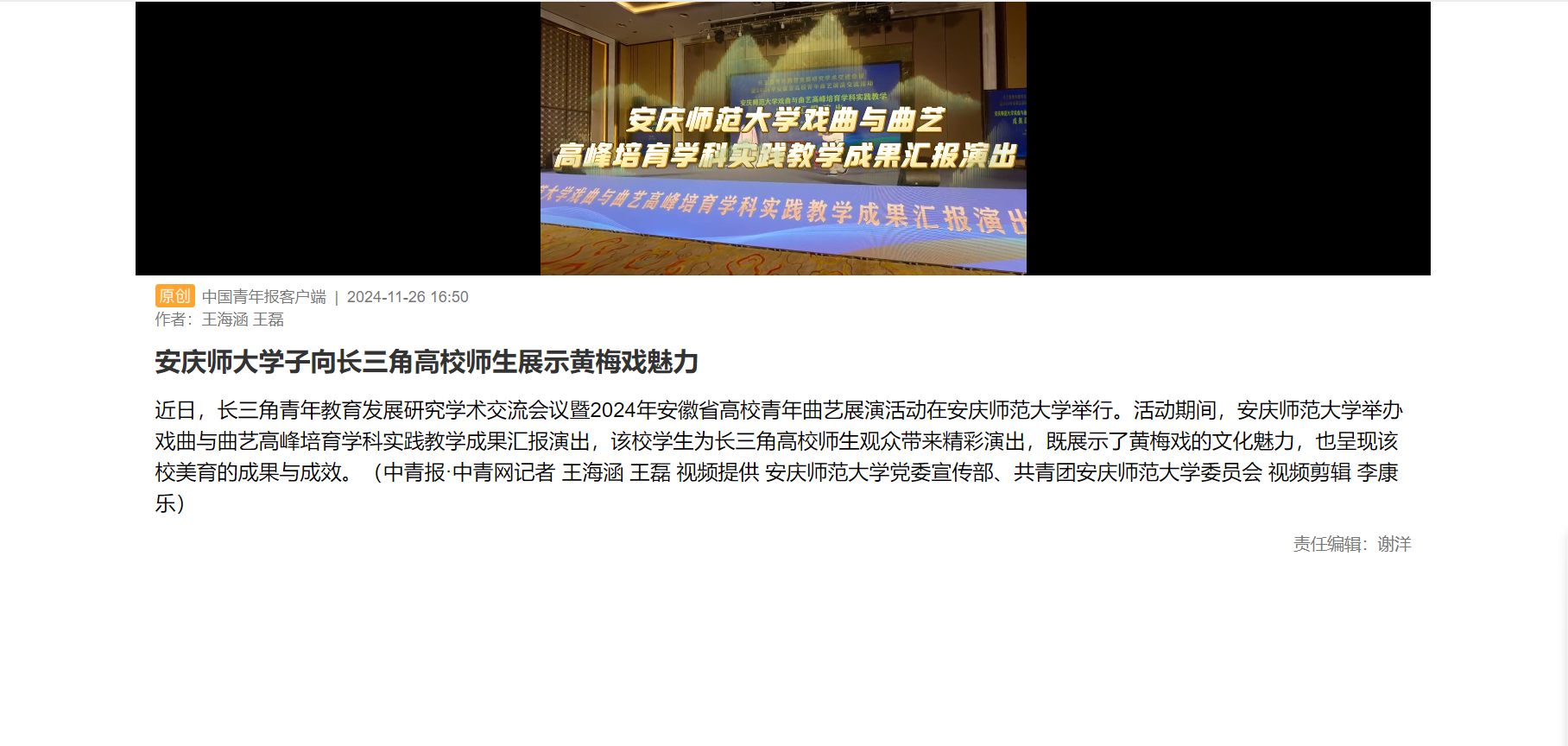 上一篇:中国青年报:安徽近200名青年师生展示曲艺传承创新