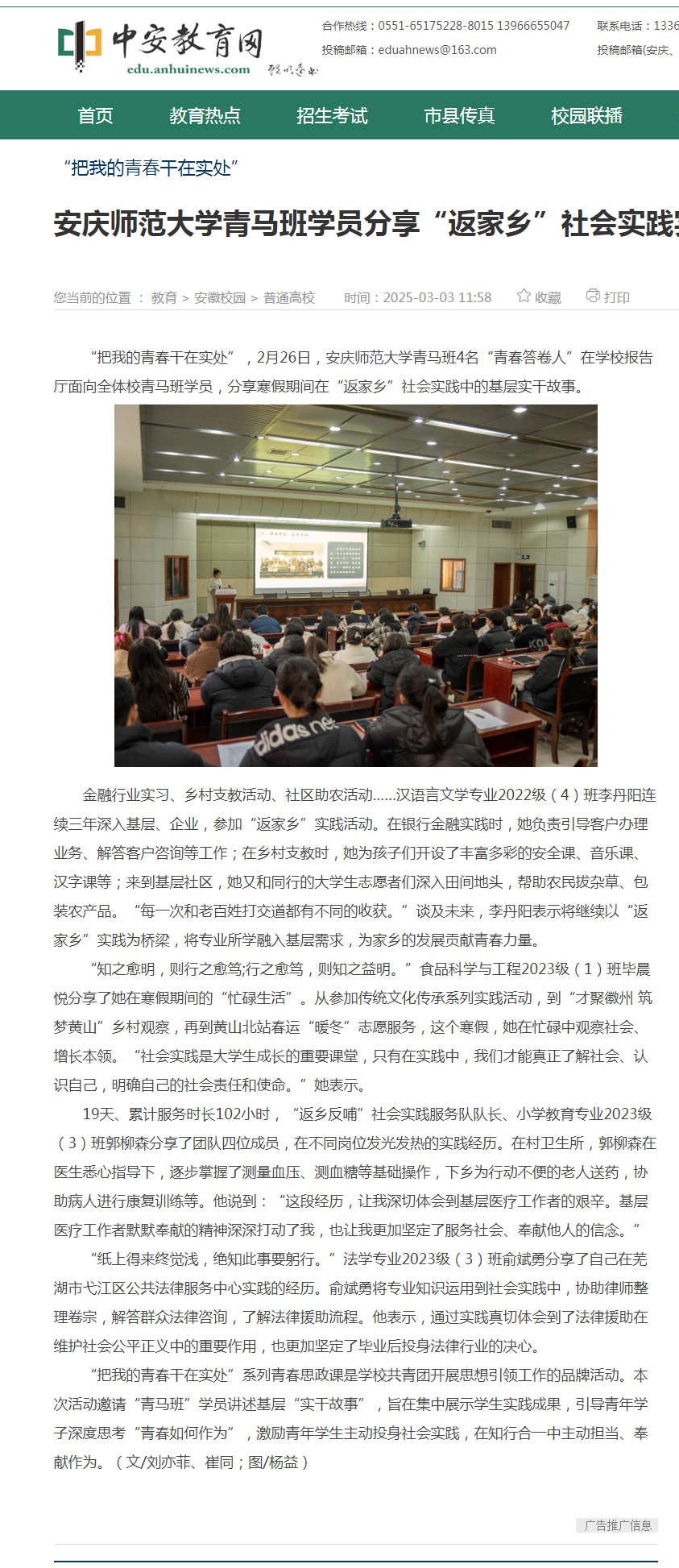 上一篇:安徽新闻网:安庆师大学子寒假“沉浸式”体验商业生态