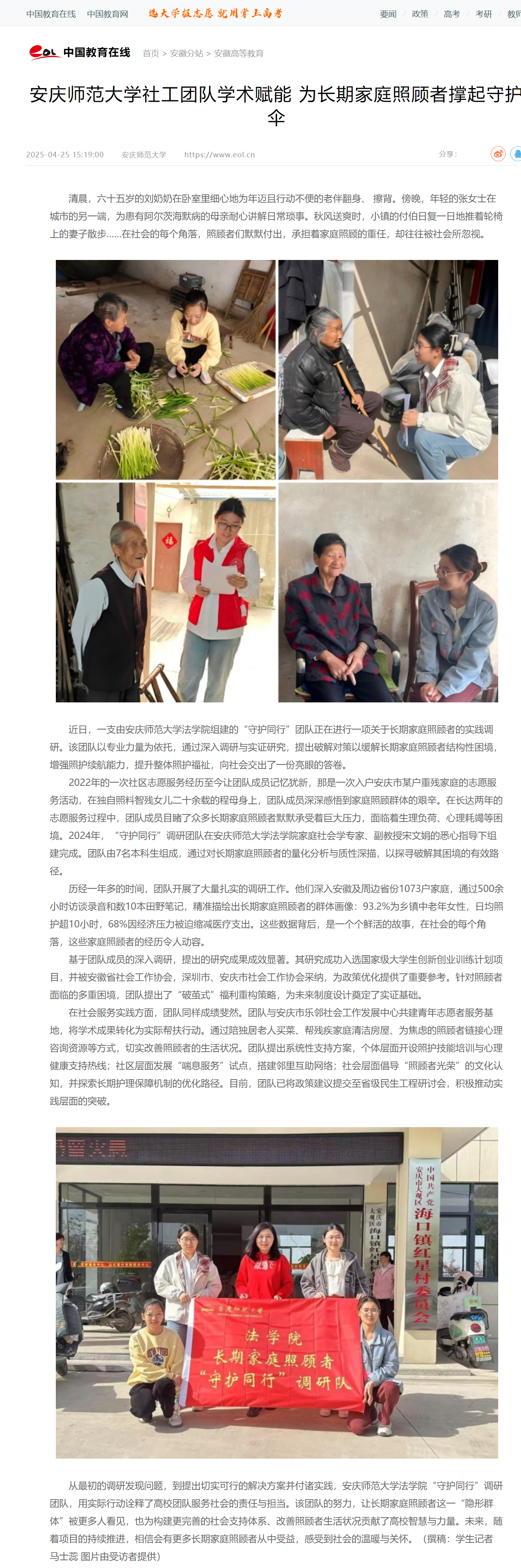 下一篇:中国网:安庆师大社工团队学术赋能 为长期家庭照顾者撑起守护伞