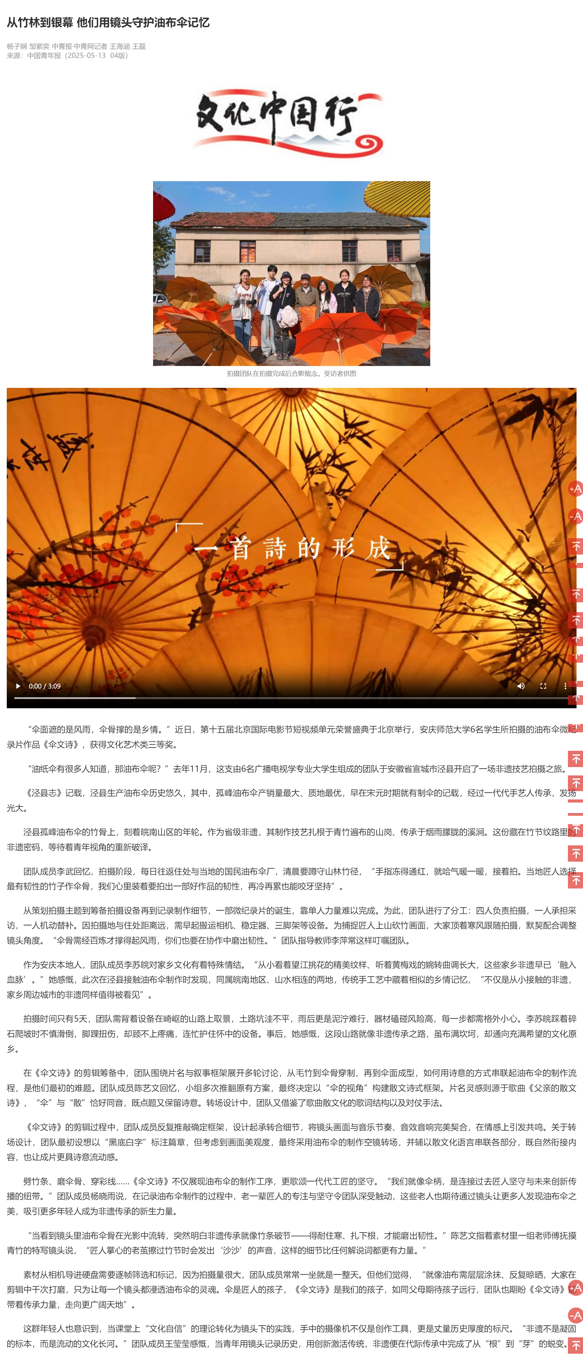 上一篇:安徽日报:从竹林到银幕,他们用镜头守护油布伞记忆