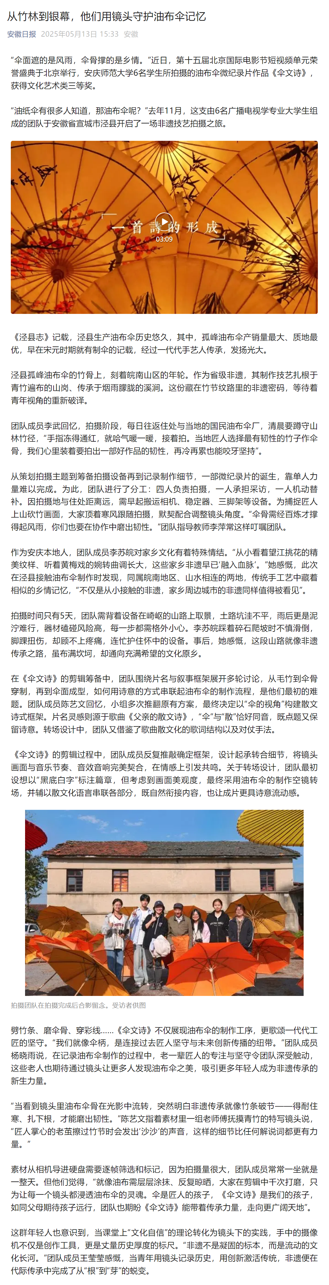 下一篇:中国青年报:从竹林到银幕 他们用镜头守护油布伞记忆