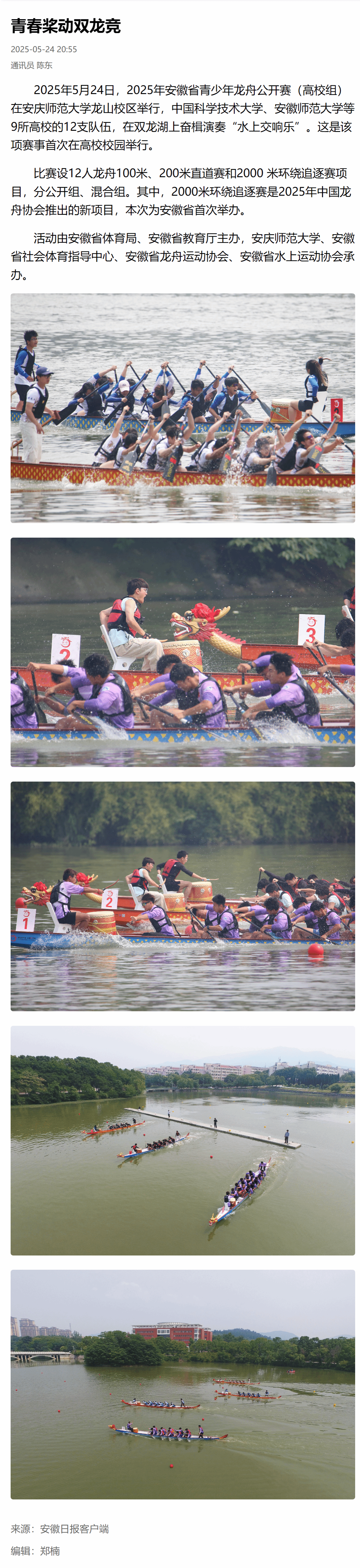 下一篇:中国青年报客户端:安徽省青少年龙舟公开赛在安庆师大鸣锣开桨