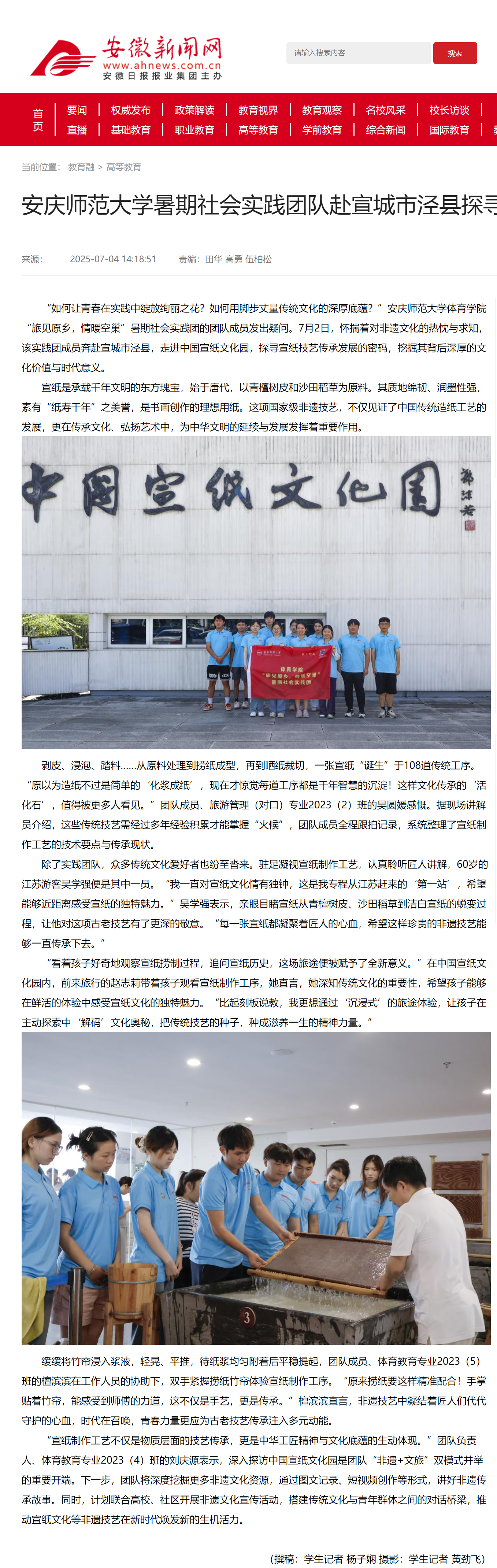上一篇:安徽新闻网:安庆师大暑期社会实践学子沉浸式体验千年宣笔文化