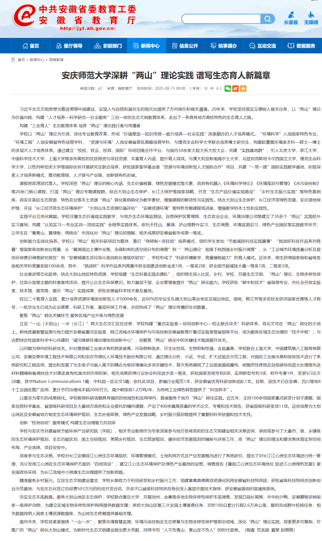 【安徽新闻网】beat365英国官方网站深耕“两山”理论实践 谱写生态育人新篇章https://jyt.ah.gov.cn/xwzx/gdjy/40760534.html
