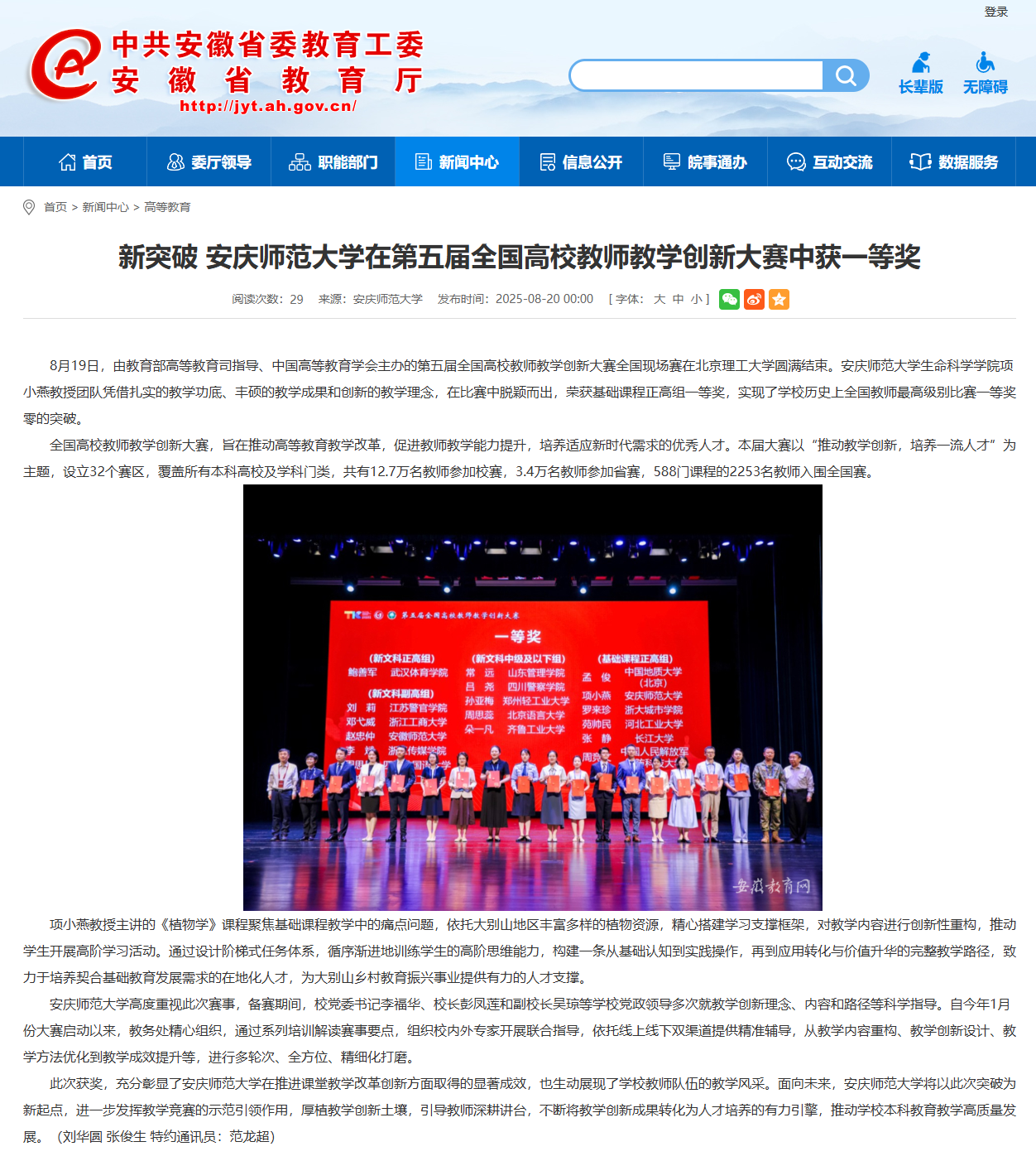 【安徽新闻网】新突破 beat365英国官方网站在第五届全国高校教师教学创新大赛中获一等奖https://jyt.ah.gov.cn/xwzx/gdjy/40760820.html