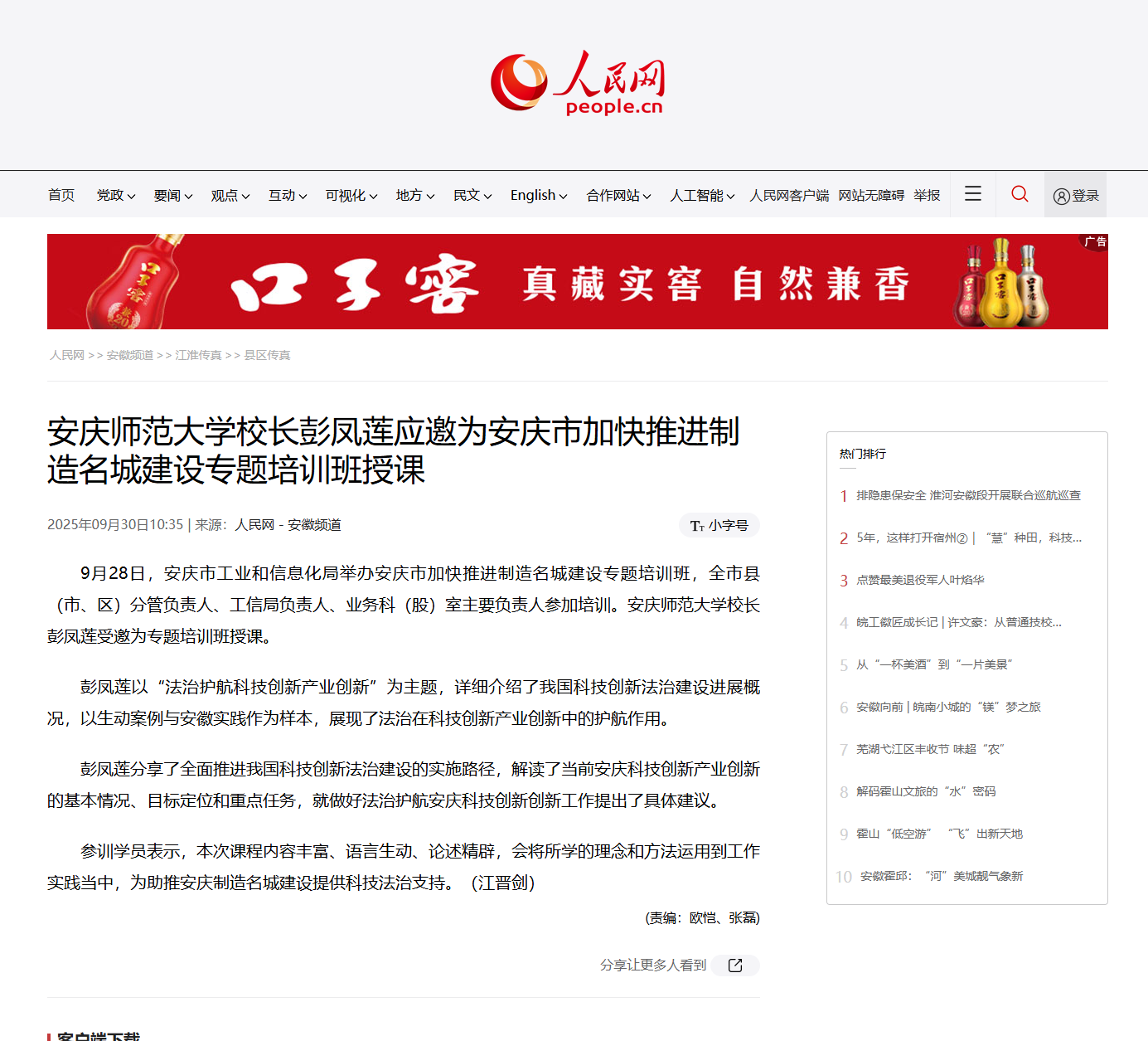 【人民网】beat365英国官方网站校长彭凤莲应邀为安庆市加快推进制造名城建设专题培训班授课http://ah.people.com.cn/n2/2025/0930/c374164-41369723.html