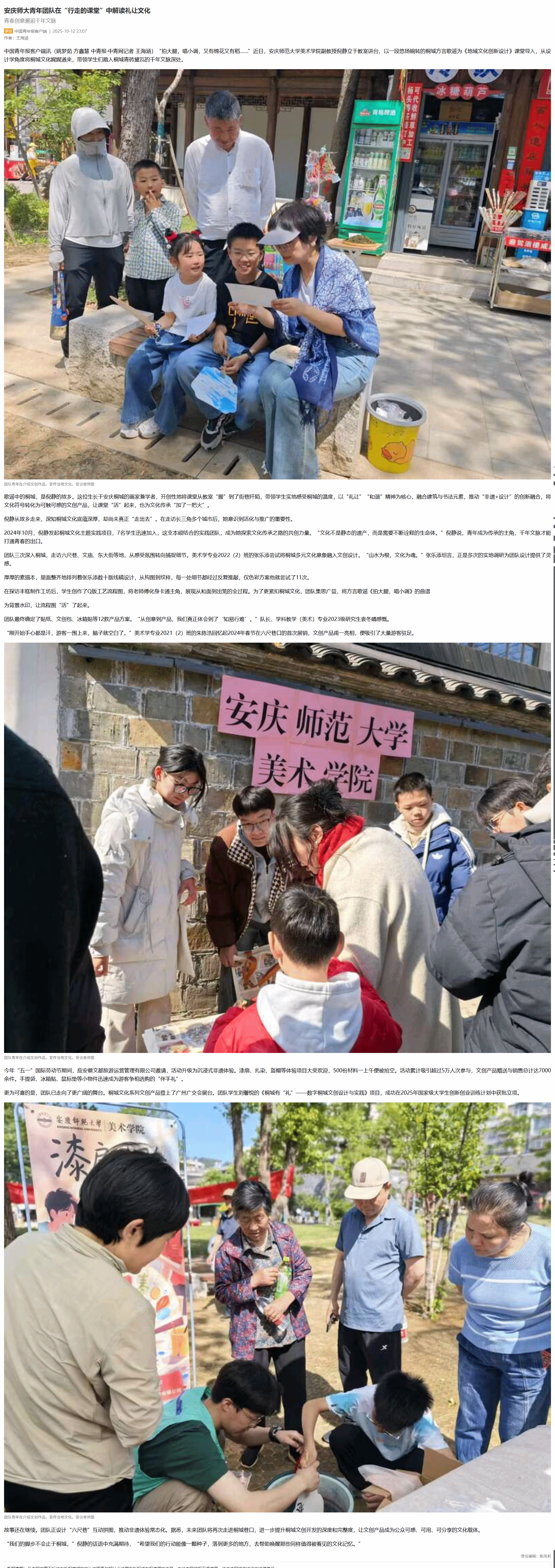 【中国青年报客户端】安庆师大青年团队在“行走的课堂”中解读礼让文化 青春创意邂逅千年文脉https://s.cyol.com/articles/2025-10/12/content_5xnREetM.html?gid=PDEAGwD9