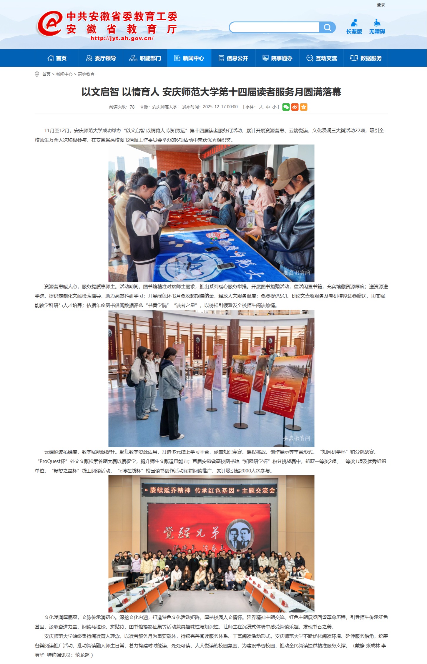 【安徽教育网】以文启智 以情育人 beat365英国官方网站第十四届读者服务月圆满落幕https://jyt.ah.gov.cn/xwzx/gdjy/40776782.html