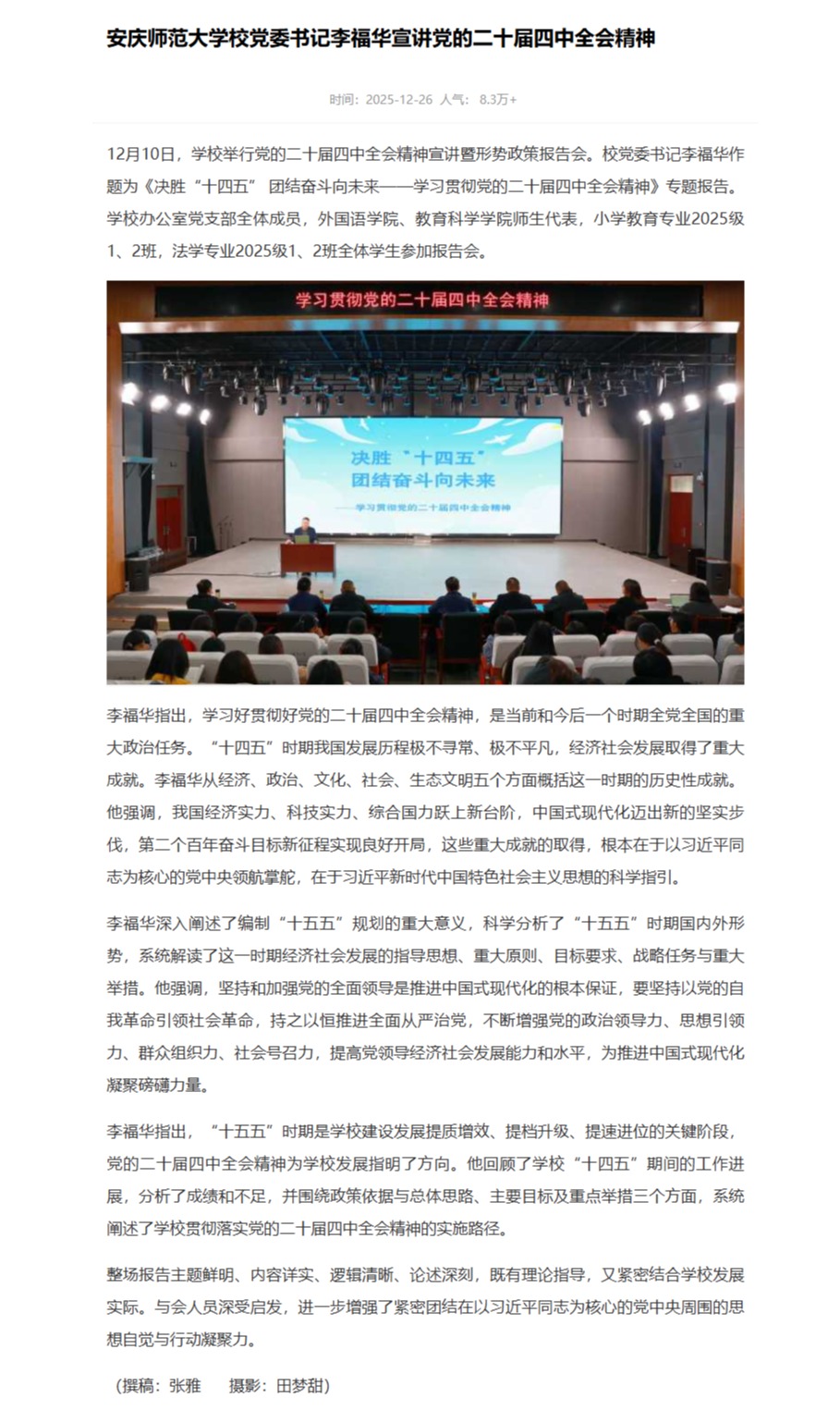 【党建头条】beat365英国官方网站校党委书记李福华宣讲党的二十届四中全会精神https://www.djttw.com/m/view.php?aid=1045623
