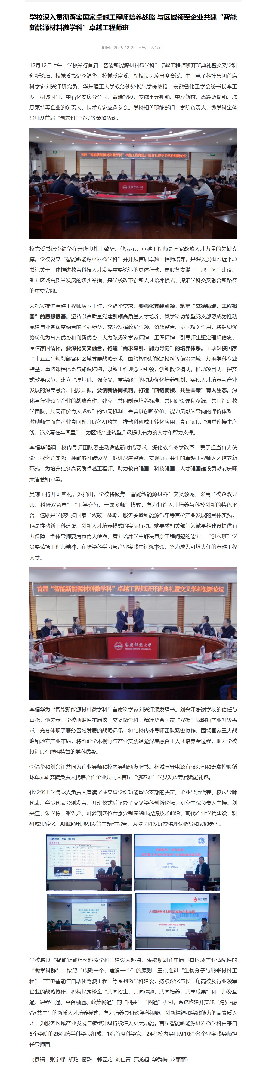 【党建头条】学校深入贯彻落实国家卓越工程师培养战略 与区域领军企业共建“智能新能源材料微学科”卓越工程师班https://www.djttw.com/m/view.php?aid=1046103