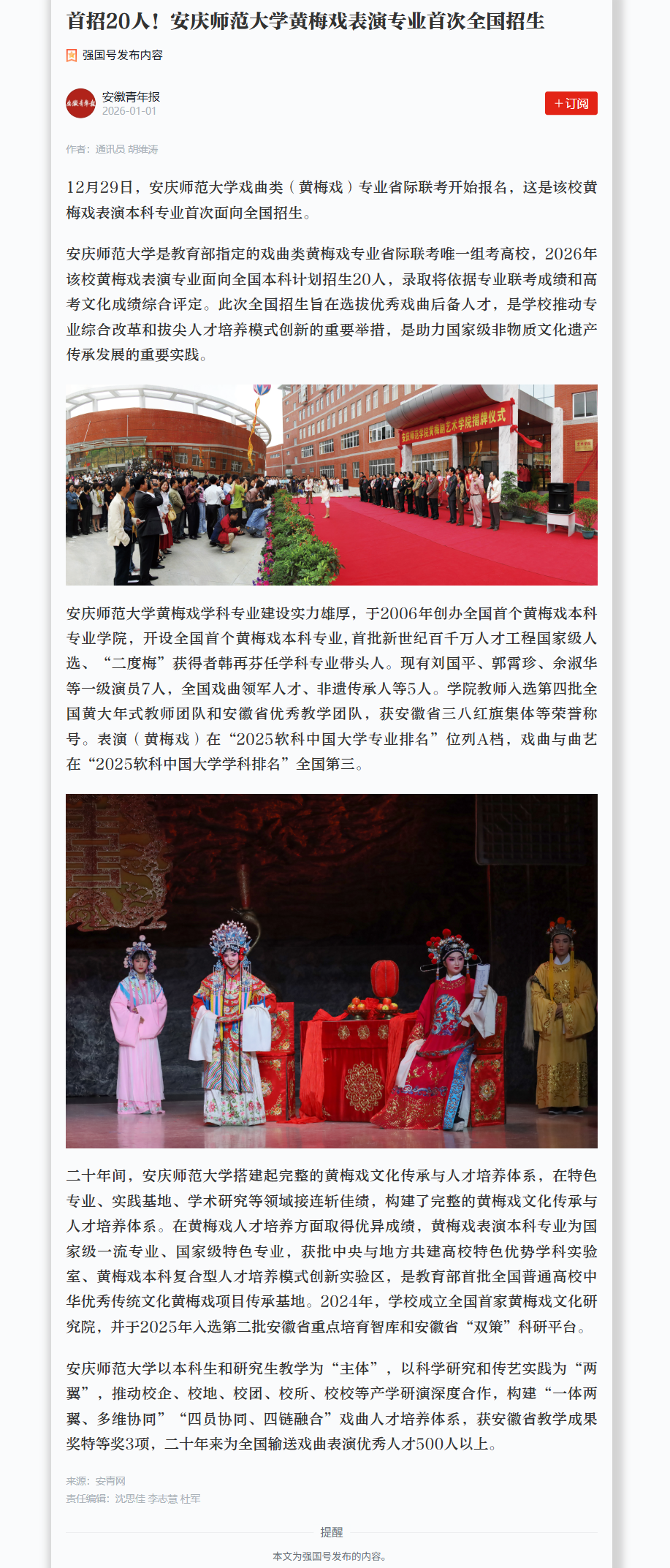 【学习强国】首招20人!beat365英国官方网站黄梅戏表演专业首次全国招生https://article.xuexi.cn/articles/index.html?art_id=16068450243458850344&source=share&study_style_id=feeds_opaque&reco_id=1036474fb8a0c0a8857e000v&share_to=wx_single&study_share_enable=1&study_comment_disable=0&ptype=0&item_id=16068450243458850344