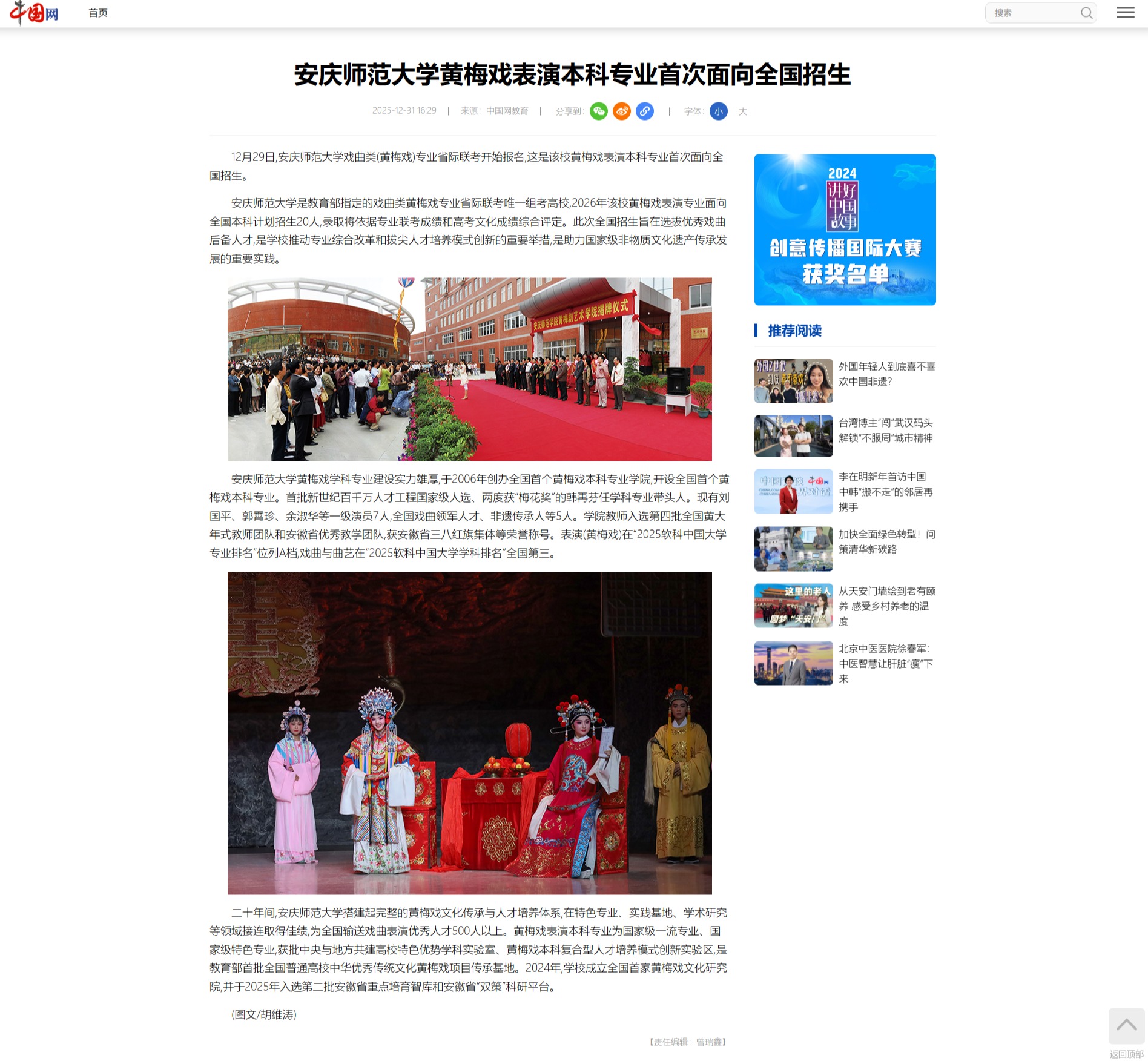 【中国网】beat365英国官方网站黄梅戏表演本科专业首次面向全国招生http://edu.china.com.cn/2025-12/31/content_118256010.shtml