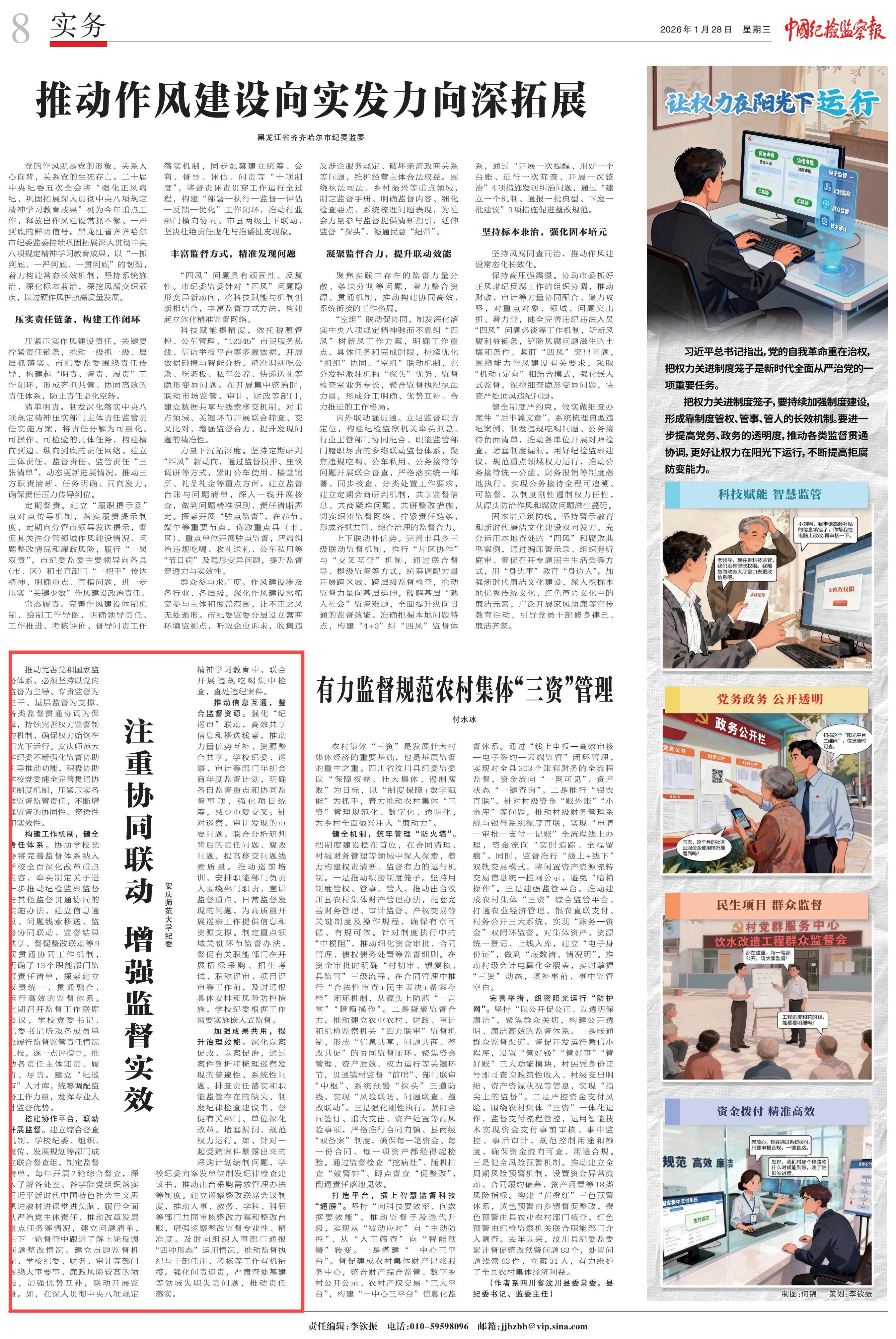【中国纪检监察报】注重协同联动 增强监督实效https://jjjcb.ccdi.gov.cn/epaper/index.html?guid=2016216878367637506