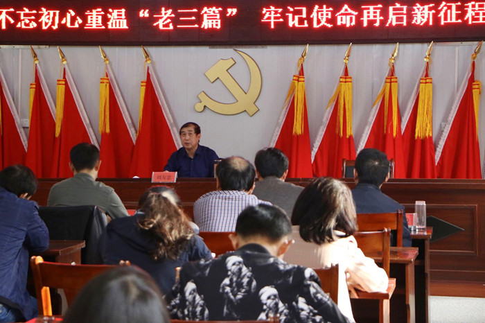 刘友忠在逐一阐述三个经典名篇的写作背景和具体内容的基础上,深刻阐明了其时代价值。他强调,一要励志修身,彰显共产党人的崇高情怀,要有全心全意为人民服务的情怀,毫不利己专门利人的精神和高尚的道德情操;二要不忘初心,永葆共产党人的政治本色,要始终牢记为了人民、紧紧地依靠人民,始终做到忠诚于党、忠诚于人民、忠诚于教育事业;三要强化担当,确保高质量打赢脱贫攻坚战。最后,他还现场创作了一首新诗:“重温三篇忆往昔,回望岁月路悠长。问我初心存何处,使命在肩敢担当。”高度凝练了重温“老三篇”的所思、所感、所悟、所得。