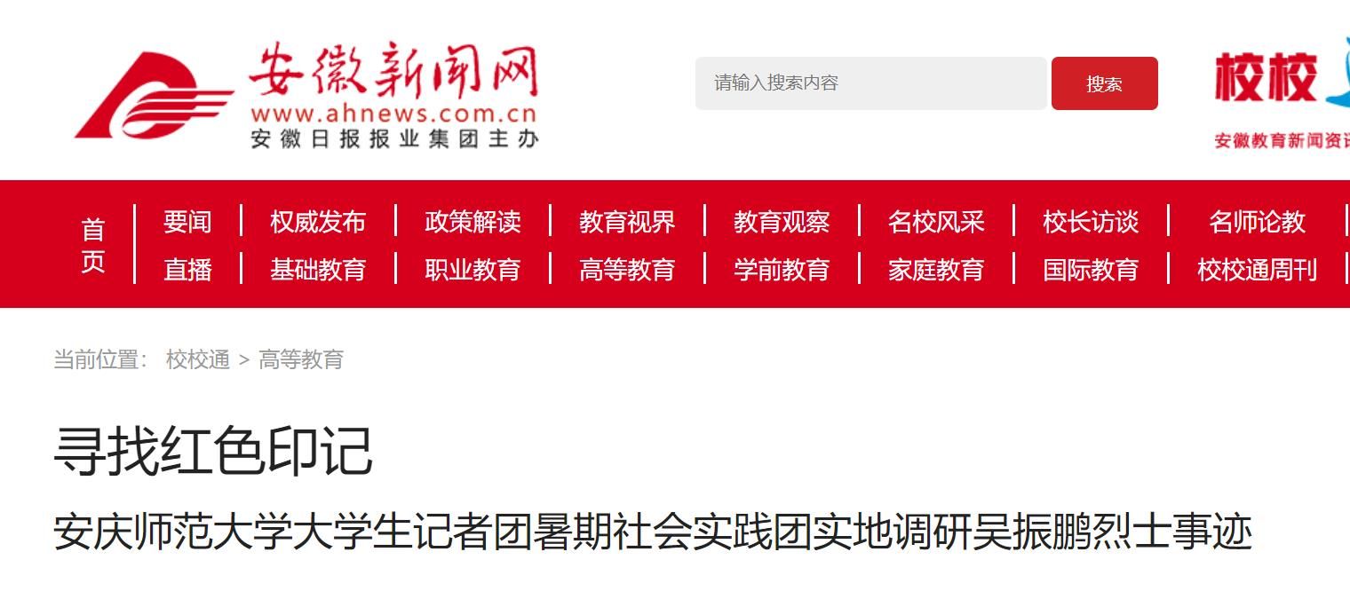 寻访主创明心路、参观纪念馆感精神……近日,beat365英国官方网站大学生记者团“传承红色基因”——寻迹著名青运先驱吴振鹏烈士暑期社会实践团前往安徽黄梅戏艺术职业学院和南京雨花台烈士纪念馆,实地调研吴振鹏烈士事迹,推动党史学习教育走心、走实、走深。