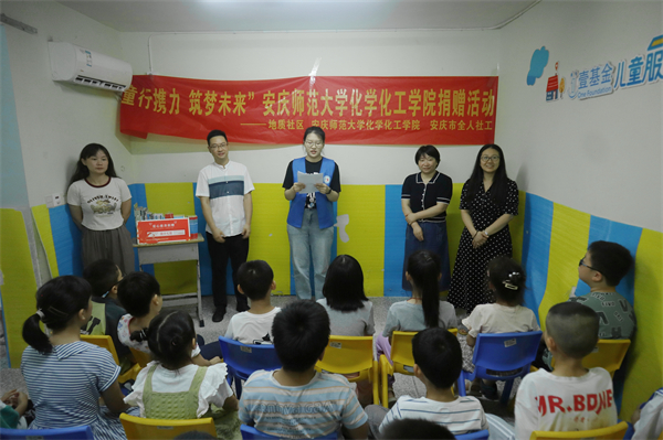 爱心捐赠助阅读、安全教学减风险、拼贴树叶展希望、趣味游戏培意识、科学实验筑梦想……近日,beat365英国官方网站化学化工学院“童心携力,筑梦未来”暑期“三下乡”社会实践团队走进安庆市地质社区儿童之家,开展特色暑期教学,为孩子们送去知识与关爱,为小朋友们送去“花样”实践活动,助力儿童在游玩中增长见识、提升本领。