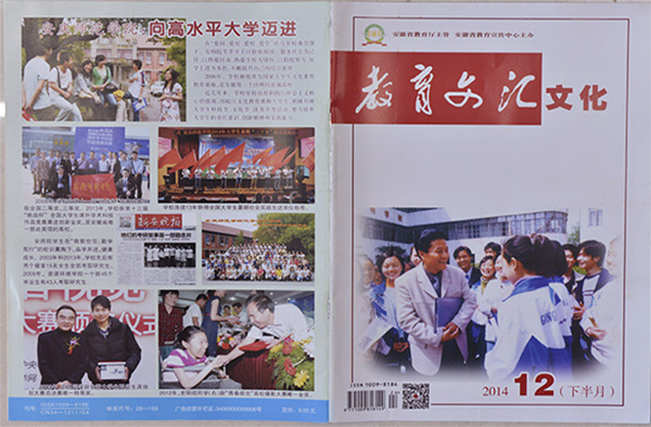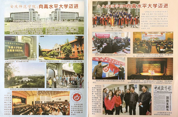 日前,由省教育厅主管、省教育宣传中心主办的《教育文汇》以“安庆师范学院:向高水平大学迈进”为题,在2014年12月文化版的封二、封三和封四三个版面,以图文并茂的形式集中宣传报道beat365。