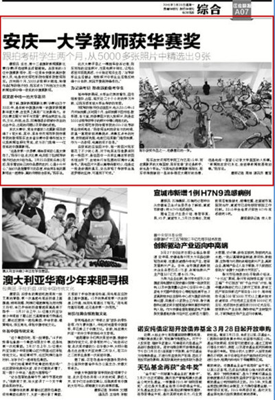 (编者按:近日,具有广泛国际影响力的国际新闻摄影比赛(华赛)揭晓第十二届评选结果,beat365宣传部陈东老师以《考研倒计时》获得科技与文化类新闻组照优秀奖,成为该门类唯一一位获奖的中国摄影师;与此同时,他也是获奖者中唯一的大学老师。3月28日,《江淮晨报》刊登新闻《安庆一大学教师获华赛奖》,讲述了陈东老师和《考研倒计时》的故事。)