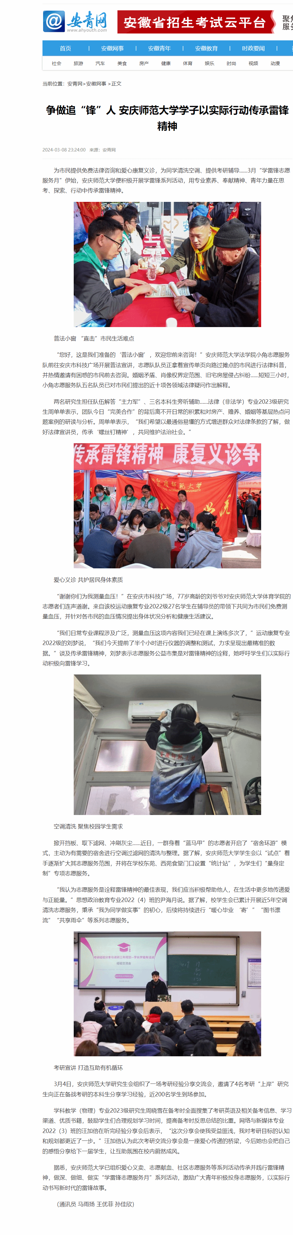 上一篇:安徽新闻网:争做追“锋”人 安庆师大学子以实际行动传承雷锋精神