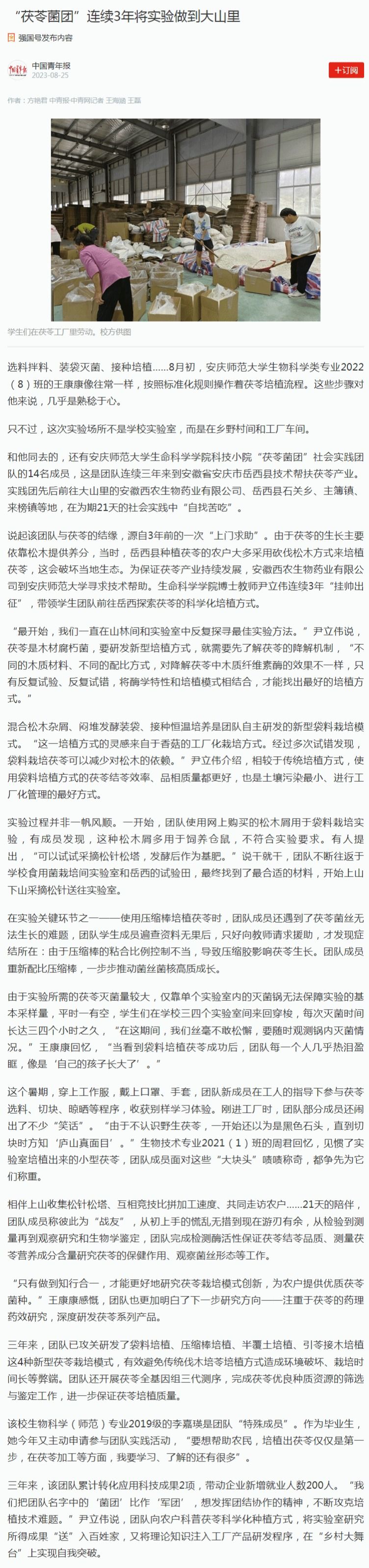 下一篇:中国青年报:“茯苓菌团”连续3年将实验做到大山里