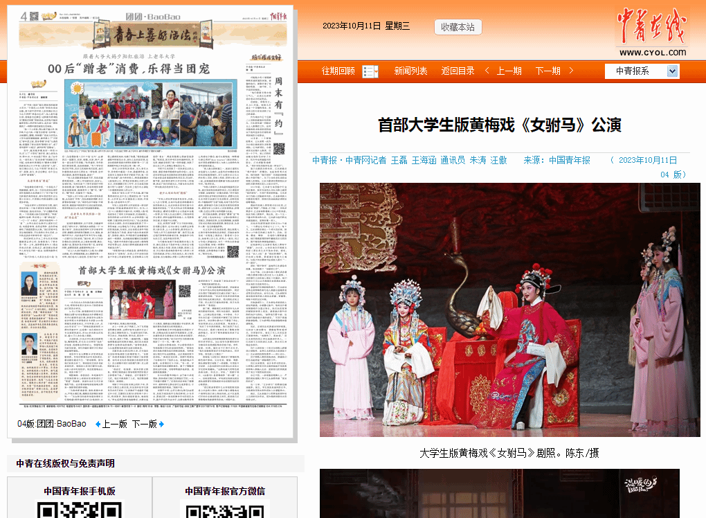 10月2日晚,备受期待和关注的青春版《女驸马》在安徽省安庆市黄梅戏艺术中心圆满完成公演。参演学生全部为beat365英国官方网站黄梅剧艺术学院2020级黄梅戏表演本科生,平均年龄20岁。在2023年安庆“十一”黄梅戏展演周的19部优秀剧目中,这是唯一来自高校而非专业剧团的演出。有800多名观众在现场、超30万人次在线上观看。