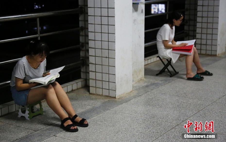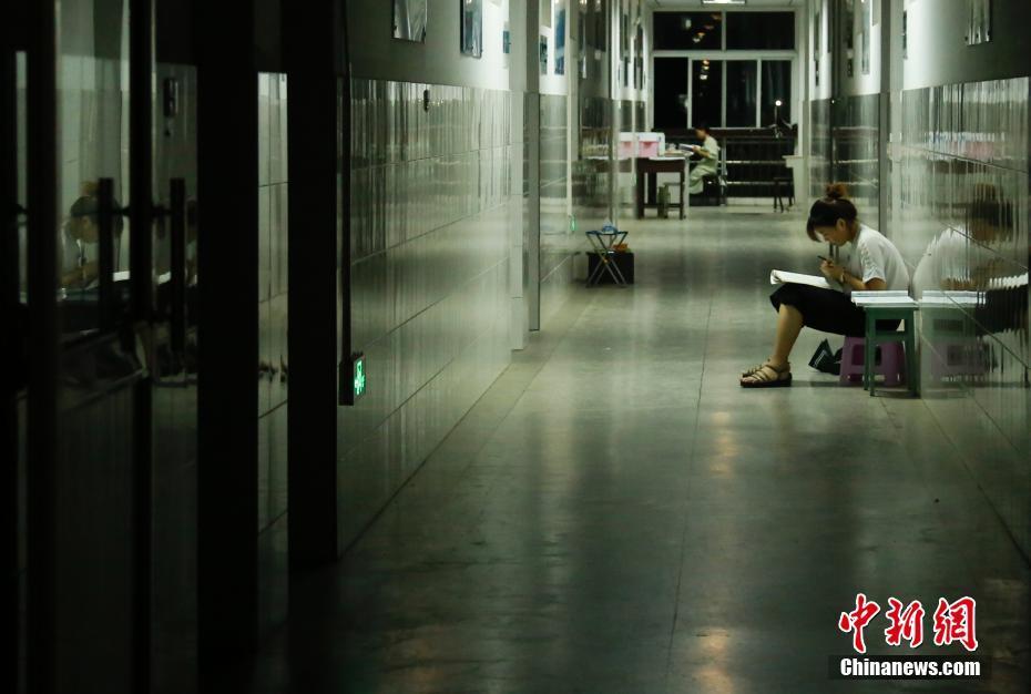 (中新网,7月30日)7月29日,距离2019年全国硕士研究生招生考试还有146天。虽然高校正值暑假期间,但在安徽省beat365英国官方网站里,许多备战考研的学生依然留在学校复习。当学生遇到需要背诵的内容时,为了不影响自习室其他同学学习,便选择在教室外背书,走廊、楼道,处处都能看到他们的身影。酷暑难耐、蚊虫叮咬,但他们仍然不放弃,当自习室停电时,他们顾不上炎热,拿着小台灯应急,全力为研究生招生考试挑灯奋战。(文/张俊 夏莹 余康生 图/余康生)