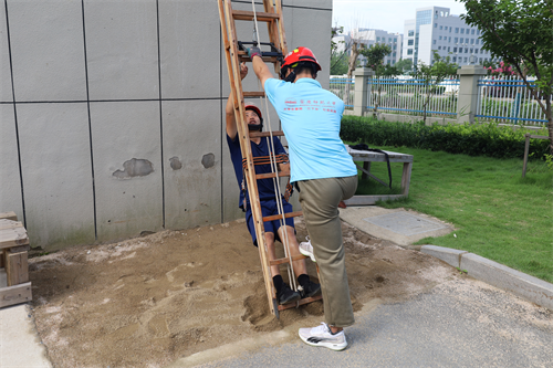关节操、三百米冲刺、一百米颠步走……看到消防队员们正在进行体能和攀爬训练,学生们纷纷表示想要加入其中。在队员们的指导下,学生们学习了使用肩梯、挂钩梯等消防器材。退伍学生、体育教育专业2021级的王顺在此班级中遇到了自己的昔日战友,看到他从解放军变身“逆行者”,王顺表示今后要向战友看齐,吃苦耐劳、严格律己,把青春奉献给祖国和人民。