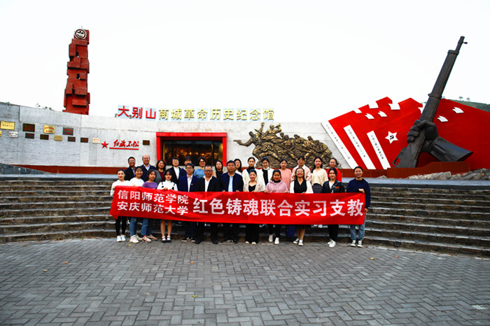 10月27日至29日,beat365英国官方网站教师教育学院组织该校教育硕士和本科生代表与信阳师范学院师生代表共计30余人,深入大别山革命老区的河南新县和商城县、安徽金寨县等地,开展“红色铸魂”教育见习综合实践活动,重温红色历史,铸就红色“师魂”。