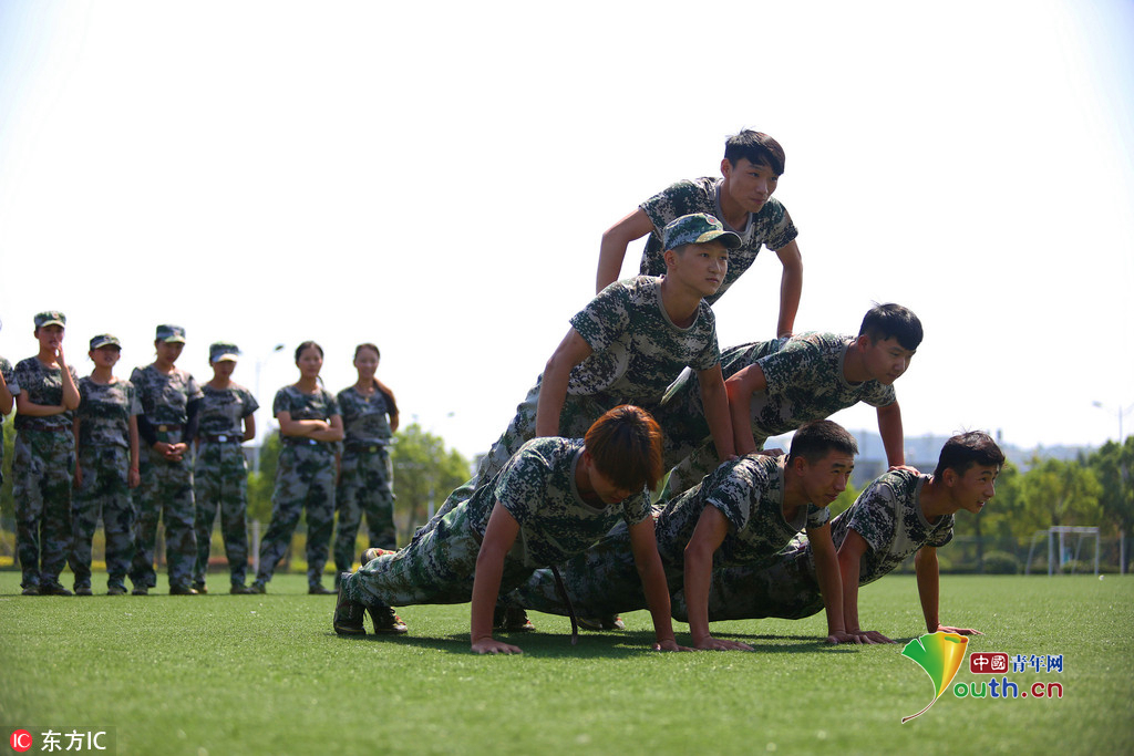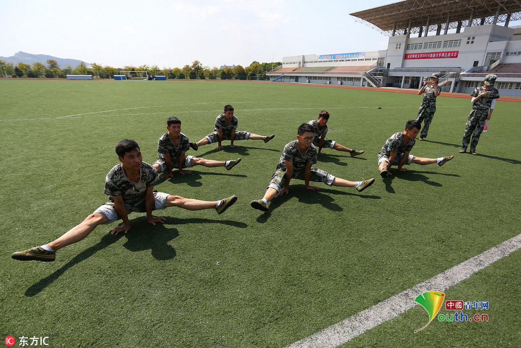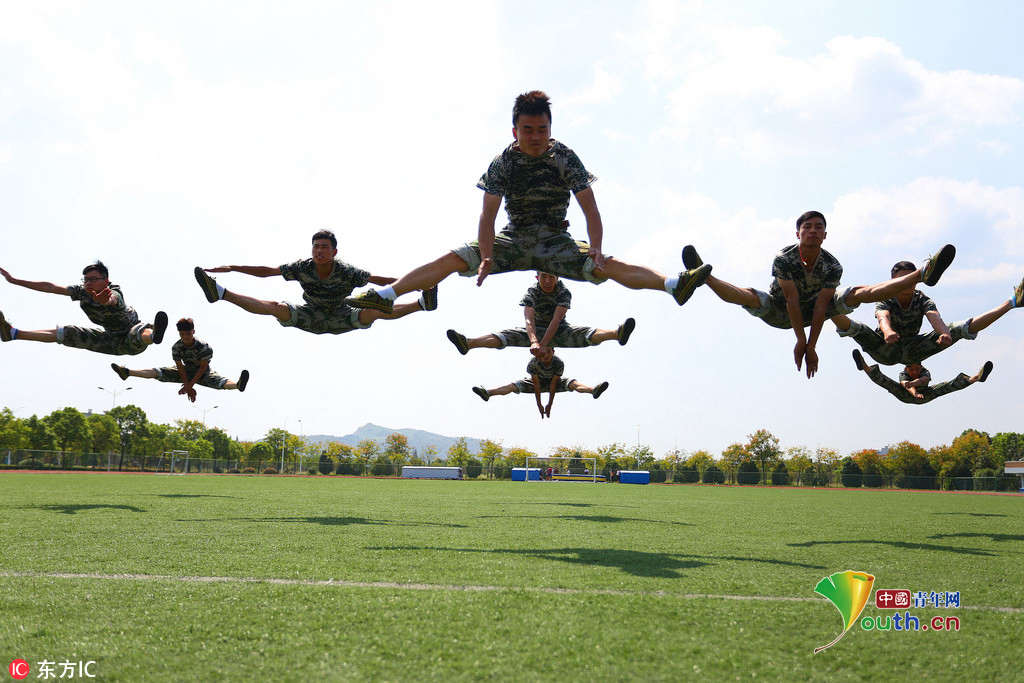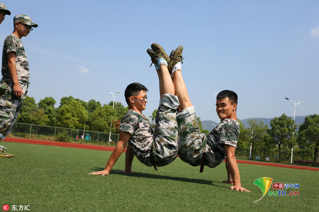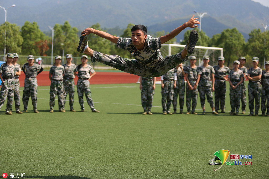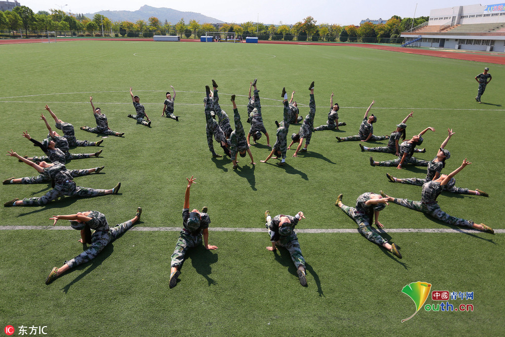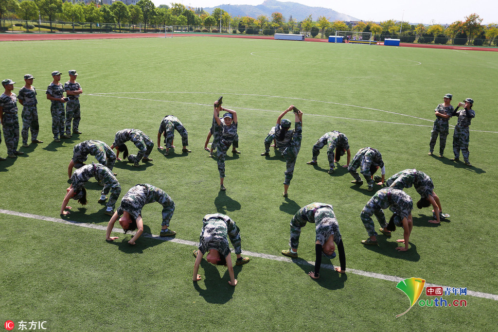 (中国青年网,9月22日)2016年9月20日,安徽beat365英国官方网站,2016级体育表演专业的新生们在军训缝隙展示专业基本功,近乎完美地展现了集