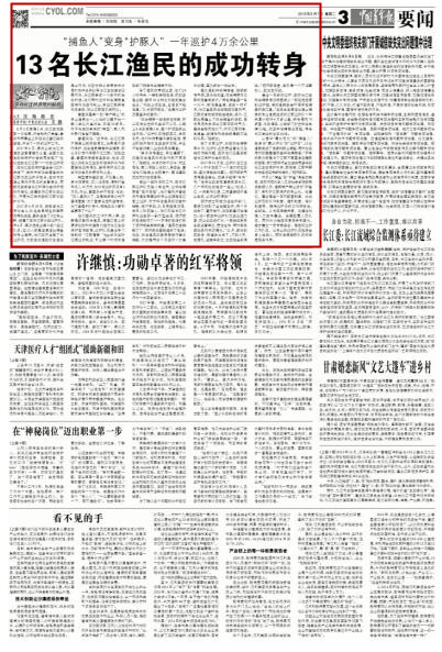 从昔日“靠水吃水”的“捕鱼人”变身为“靠水护水”的“巡护员”,13位渔民完成了自身的职业转型,同时也在用行动警醒着那些非法捕捞者。“所有的努力都是为了江豚不再重演白鳍豚的悲剧,我们想呼吁全社会共同参与到长江生态保护中来,我相信,江豚种群的命运将迎来新的转机。”胡师斌说。
