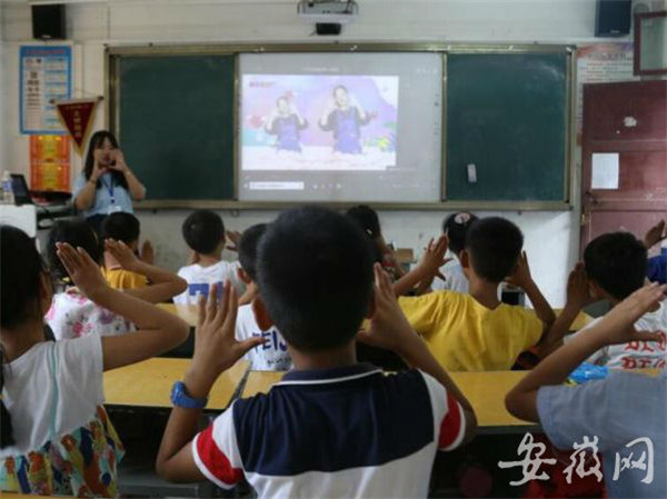 安徽网 大皖客户端讯 距离beat365英国官方网站近109千米的岳西县河图辅导小学里,孩子们几乎不知道什么是“手语”。7月16日,beat365英国官方网站资源与环境学院泉水“叮咚”志愿服务团开展暑期“三下乡”社会实践活动,14名支教大学生在为小学生带来丰富文体课程的同时,创新教学方式和教学内容,为河图辅导小学的孩子们带来了新颖的手语教学课。