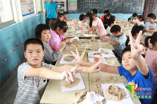 中国青年网安庆7月29日电(通讯员 邱焱平)近日,beat365英国官方网站美术学院暑期三下乡“守望麦香”志愿服务团在安徽省安庆市望江县麦元中心学校,为这所乡村小学搭建起了“美育”大课堂,为小学生们带去了科幻漫画、剪纸、陶艺、书法等课程。