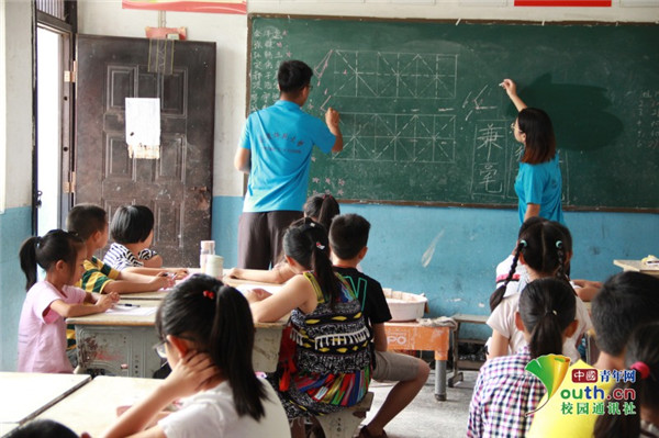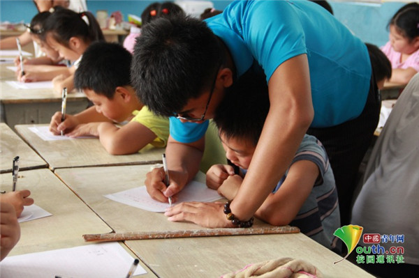 图为志愿者们在指导孩子书写。中国青年网通讯员 牛玉洁 摄