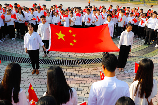 千余名大学生自发组织快闪、献血、乐跑等活动,共同为新中国70周年华诞献礼;广大师生用书法、摄影、绘画、剪纸等艺术形式表达自己的爱国之情;学校还拍摄了“超燃版《歌唱祖国》”微视频,一经推出,立即刷爆了师生们的朋友圈,掀起了表白祖国的热潮。