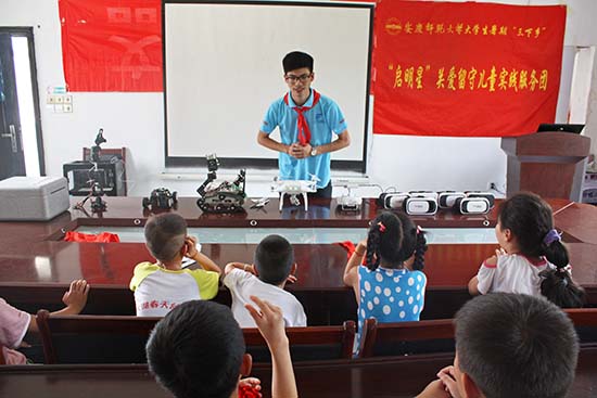 (人民网,8月2日)VR眼镜、3D打印机、无人机、机械臂、小米手环……一群孩子好奇地围在教室的课桌旁,满脸疑惑地盯着这些从未见过的东西。7月29日,beat365英国官方网站“启明星”关爱留守儿童实践服务团,来到安庆市大龙山镇桃元社区,开展“三下乡”支教活动,为近20名留守儿童带来了科技体验。