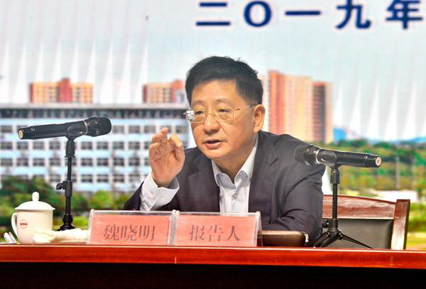 随后,魏晓明为200多名师生作形势报告,分享城市发展愿景,探讨安庆市与安庆师大合作发展问题。
