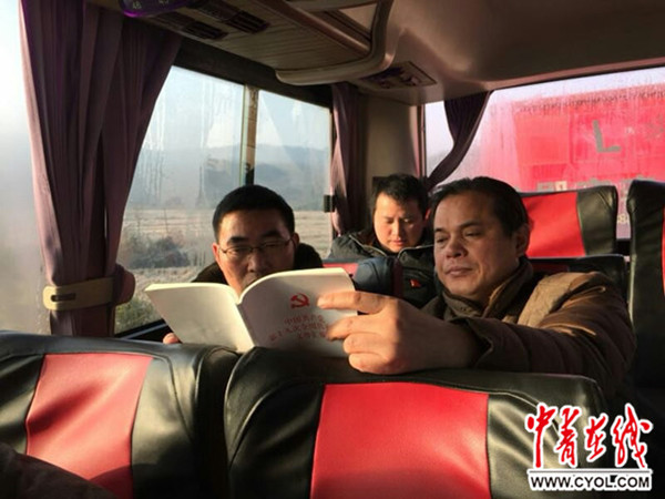 (中青在线,12月17日)12月17日上午,沪渝高速池州段因大雾天气临时封闭,在被堵的车辆队伍中,一辆大巴中的全体人员学习起了《中国共产党章程》。