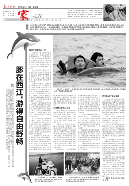 对于这十亩水面,于道平并没有“满足”,他明白自己任重而道远。为了推动西江早日建成江豚迁地保护区,从2015年春季开始,工程中心从其他横向项目结余经费中垫资为西江做本底调查,历时一年多,后来又与中国水产科学研究院淡水渔业中心合作,顺利得到农业部长江办批准。