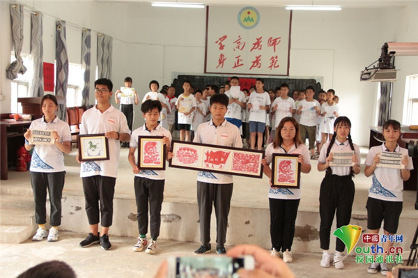 图为成果展当天实践团成员们展示自己的挑花作品。 中国青年网通讯员 牛玉洁 摄