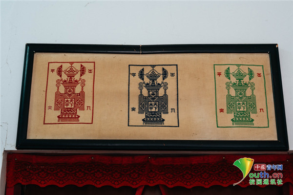 图为帅根元老先生家中的挑花作品。中国青年网通讯员 牛玉洁 摄