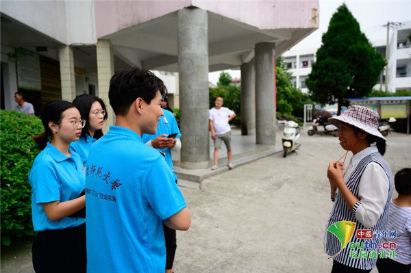 图为实践团成员采访当地居民,了解有关望江挑花的信息。 中国青年网通讯员 牛玉洁 摄