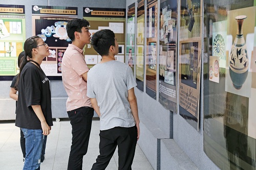 展出作品的内容和主题各不相同。莫高窟壁画,以鲜艳明亮的色调为主,代表了西北特有的地域因素,让人感受千年文明的变迁;敦煌文化中的独特文案,是中外文化交流融合后的特有产物,让人体会在长久文化历程中形成的各种各样的文化符号的奇妙。学生通过对“一带一路”的实地考察,提取传统元素融入作品,同时结合现代技术加以变化和设计,体现出对于悠久历史文化的传承与发展。