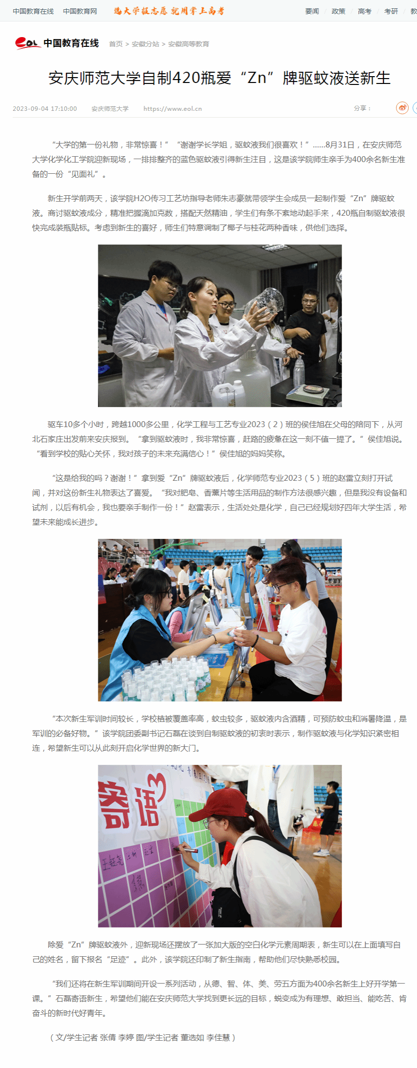 下一篇:安青网:开学第一天 400余名大学新生收到师生亲制驱蚊液