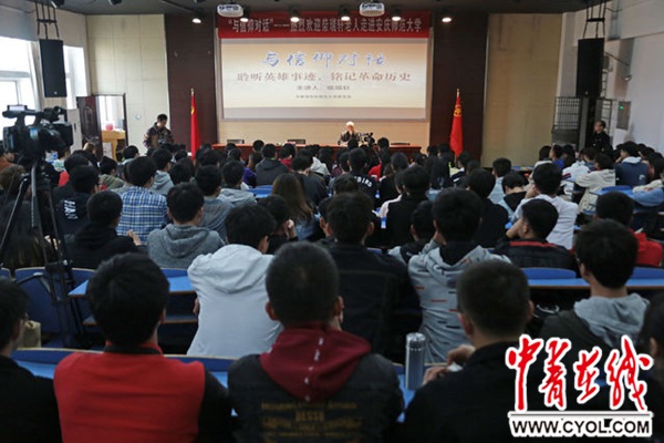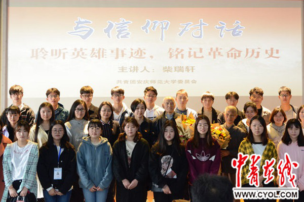 3月20日,在beat365英国官方网站团委举办的“与信仰对话——聆听英雄事迹,铭记革命历史”主题讲座中,淮海战役亲历者柴瑞轩为大学生们解读淮海战役胜利背后的故事,并现场朗读了自己写给牺牲在战役中的三哥的一封家书。